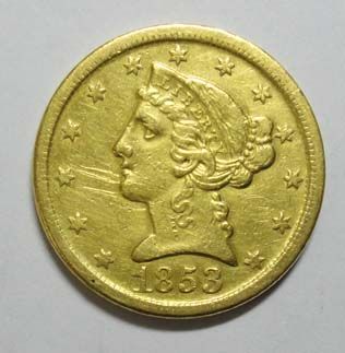 1853-D $5 GOLD XF-AU LIGHT SCRATCH OBV. RARE DAHLONEGA, GEORGIA BRANCH MINT