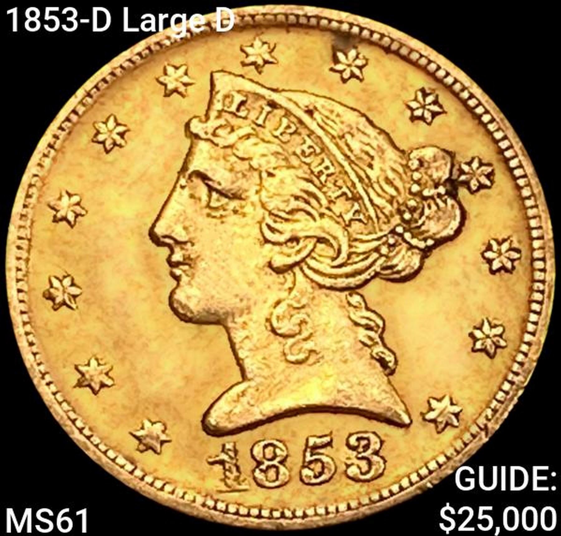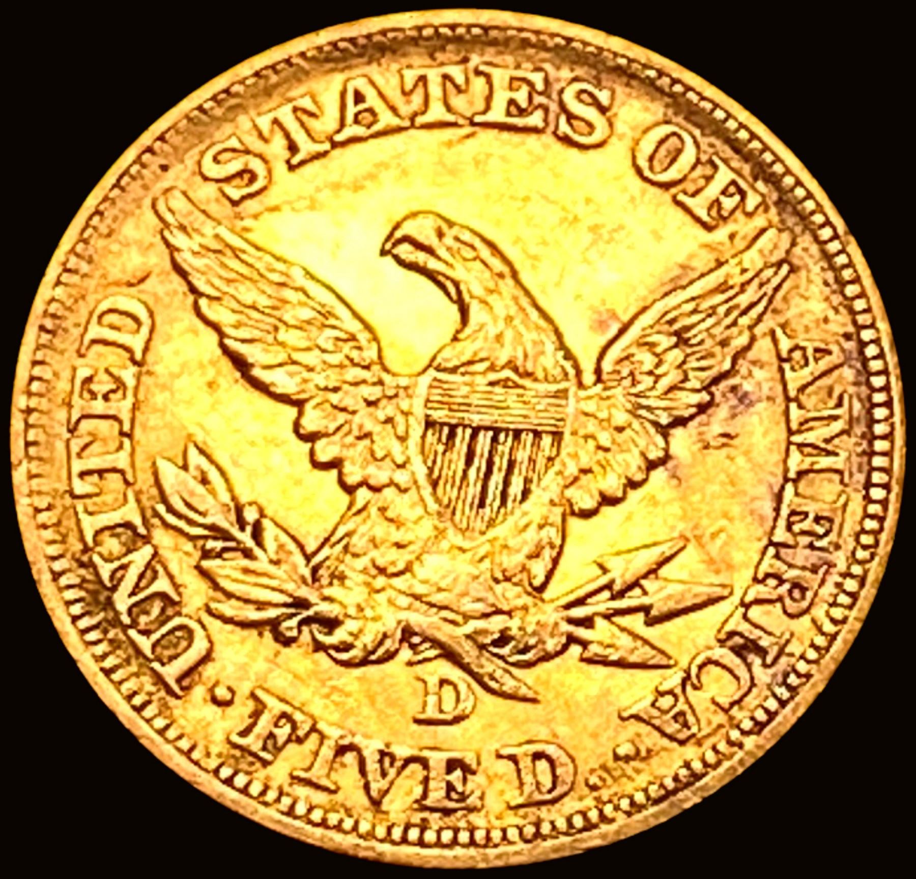 1853-D Large D $5 Gold Half Eagle UNCIRCULATED