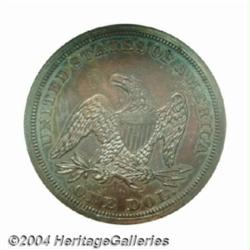 <table><tbody><tr><td><table> <TR><TD width="100%"><TABLE cellSpacing=1 cellPadding=3 width="100%" border=0><TBODY><TR><TD width="100%" bgColor=#79735c><FONT face=arial color=#ffffff size=3><B>Description</B> </FONT></TD></TR><TR><TD width="100%" bgColor=#ffffff><FONT face=arial size=2><B>1853 DTS$1 Dollar, Judd-154 Restrike, Pollock-183, High R.7,--Spots Tooled, Cleaned--ANACS. Net PR60.</B></I> A regular dies Seated Liberty Dollar issue produced sometime in the 1860s or 1870s (depending on the researcher) from leftover proof dies when a small quantity of silver pieces were also struck for collectors. Struck in copper with a reeded edge. The marginal condition of this specimen would normally point to the Farouk "Palace Collection," although another slightly mishandled piece was sold five years ago as part of the Dr. Wallace Lee Collection. That coin, an ANACS PR60 Brown realized $3,680. Small areas of tooling are noted on each side, and the glossy surfaces have been retoned in rich mahogany, mint-green, and yellow-gold shades. </FONT></TD></TR></TBODY></TABLE></TD></TR></TBODY></TABLE><BR><A name=PricesRealized></A><TABLE cellSpacing=0 cellPadding=0 width="100%" bgColor=#000000 border=0><TBODY><TR><TD width="100%"><TABLE cellSpacing=1 cellPadding=3 width="100%" border=0><TBODY><TR><TD width="100%" bgColor=#79735c><A name=PR><FONT face=arial color=#ffffff size=3><B>Previous Prices from Heritage Auctions</B> </FONT></A></TD></TR><TR><TD bgColor=#f6f6ed>No Prior Data Recorded </TD></TR><TR><TD bgColor=#ffffff><FONT face=arial size=1 ?>PLEASE NOTE: All prices realized reflect the final hammer price PLUS the buyer's premium in auctions that charge a buyer's premium. Each item has a notation at the top of the listing indicating whether that lot included a buyer's premium. Example: A item that sells with a final hammer price of $100 and a 20% buyer's premium will display with a price realized of $120. All information listed is intended to be as accurate as possible, but errors are possible. Please use this guide carefully and inform us of any inaccuracies. </FONT></TD></TR></TBODY></TABLE></TD></TR></TBODY></TABLE><BR><TABLE cellSpacing=0 cellPadding=0 width="100%" bgColor=#000000 border=0><TBODY><TR><TD width="100%"><TABLE cellSpacing=1 cellPadding=3 width="100%" border=0><TBODY><TR><TD width="100%" bgColor=#79735c colSpan=6><FONT face=arial color=#ffffff size=3><B>Price Guide*</B> </FONT></TD></TR><TR bgColor=#f6f6ed><TD align=middle><B>Grade</B> </TD><TD align=middle><B>Coin World<BR>(Trends)</B> </TD><TD align=middle><B>Numismedia<BR>Retail</B> </TD><TD align=middle><B>Numismedia<BR>Wholesale</B> </TD><TD align=middle><B>Coin<BR>Universe</B> </TD><TD align=middle><B>Heritage<BR>Value Index</B> </TD></TR><TR bgColor=#ffffff><TD align=middle>58</TD><TD align=right>---</TD><TD align=right>---</TD><TD align=right>---</TD><TD align=right>---</TD><TD align=right>---</TD></TR><TR style="FONT-WEIGHT: bold" bgColor=#cccfdd><TD align=middle>60</TD><TD align=right>---</TD><TD align=right>---</TD><TD align=right>---</TD><TD align=right>---</TD><TD align=right>---</TD></TR><TR bgColor=#ffffff><TD align=middle>61</TD><TD align=right>---</TD><TD align=right>---</TD><TD align=right>---</TD><TD align=right>---</TD><TD align=right>---</TD></TR><TR bgColor=#ffffff><TD colSpan=6><FONT size=1>*All information listed is intended to be as accurate as possible, but errors are possible. No item may be returned or refused based on this information which is provided as a service to our customers. You should contact each pricing source directly to determine the accuracy of this information. </FONT></TD></TR></TBODY></TABLE></TD></TR></TBODY></TABLE><BR><TABLE cellSpacing=0 cellPadding=0 width="100%" bgColor=#000000 border=0><TBODY><TR><TD width="100%"><TABLE cellSpacing=1 cellPadding=3 width="100%" border=0><TBODY><TR><TD width="100%" bgColor=#79735c><FONT face=arial color=#ffffff size=3><B>Population Guide</B> </FONT></TD></TR><TR bgColor=#ffffff><TD align=middle><!-- Begin Output of Population Grid--><TABLE cellSpacing=0 cellPadding=0 width="100%" border=0><TBODY><TR><TD vAlign=center><TABLE cellSpacing=0 width="100%" border=1 cellsadding="3"><TBODY><TR><TD vAlign=center><TABLE cellSpacing=0 cellPadding=3 width="100%" border=1><TBODY><TR><TD vAlign=center align=middle bgColor=#f0f1e8 colSpan=2 <CENTER><FONT face=Arial size=2><B>PCGS Pop </B></FONT><CENTER></CENTER></TD><TD vAlign=center align=middle bgColor=#f0f1e8 colSpan=2><CENTER><FONT face=Arial size=2><B>NGC Pop</B></CENTER></FONT></TD></TR><TR><TD vAlign=center><FONT face=Arial size=2>(60)</FONT> </TD><TD vAlign=center align=right><FONT face=Arial size=2>0</FONT> </TD><TD vAlign=center><FONT face=Arial size=2>(60)</FONT> </TD><TD vAlign=center align=right><FONT face=Arial size=2>0</FONT> </TD></TR><TR><TD vAlign=center><FONT face=Arial size=2>(>60)</FONT> </TD><TD vAlign=center align=right><FONT face=Arial size=2>1</FONT> </TD><TD vAlign=center><FONT face=Arial size=2>(>60)</FONT> </TD><TD vAlign=center align=right><FONT face=Arial size=2>0</FONT> </TD></TR></TBODY></TABLE></TD></TR></TBODY></TABLE></TD></TR></TBODY></TABLE><!-- End Output of Population Grid--></TD></TR></TBODY></TABLE></TD></TR></TBODY></TABLE><BR><TABLE cellSpacing=0 cellPadding=0 width="100%" bgColor=#000000 border=0><TBODY><TR> <font color='#000000'><span style='background-color: #FFFFFF'><td bgcolor='#FFFFFE'> Important notice: Heritage usually auctions material at the rate of 200-250 lots per hour. On some occasions eBay Live bid software or the Internet may not be able to keep up with the pace of the auction. We recommend placing a realistic absentee bid now as insurance to avoid disappointment. Occasionally the auctioneer may eliminate or reject an eBay Live bid, and the auctioneer may also reopen a lot after the close of the eBay live bidding (usually because we missed an audience bid), and may reject your bid even if it shows you as the winning bidder. By bidding via eBay Live, you 