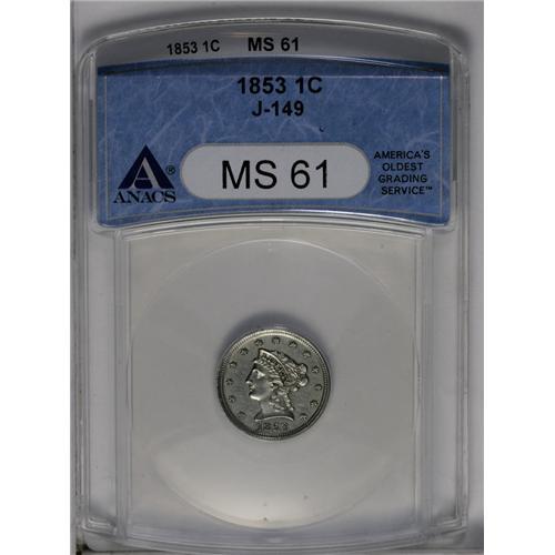 1853 E1C One Cent, Judd-149, Pollock-178, High R.6, PR