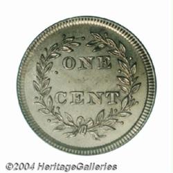 <table><tbody><tr><td><table> <TR><TD width="100%"><TABLE cellSpacing=1 cellPadding=3 width="100%" border=0><TBODY><TR><TD width="100%" bgColor=#79735c><FONT face=arial color=#ffffff size=3><B>Description</B> </FONT></TD></TR><TR><TD width="100%" bgColor=#ffffff><FONT face=arial size=2><B>1853 E1C One Cent, Judd-149, Pollock-178, R.5, PR64 PCGS.</B></I> The obverse is the same as that used to coin regular issue 1853 Quarter Eagles. The reverse shows the denomination ONE CENT within a laurel wreath. Struck in a German silver alloy with a reeded edge. A metallurgical analysis is necessary to determine the Judd variety for this type, since the copper-nickel and German silver alloys cannot be distinguished by color. The boldly defined specimen offered here has a thin veil of milky patina and a few trivial flyspecks on the obverse.<BR><I>From The New Millennium Collection, Part 3.</B></I> </FONT></TD></TR></TBODY></TABLE></TD></TR></TBODY></TABLE><BR><A name=PricesRealized></A><TABLE cellSpacing=0 cellPadding=0 width="100%" bgColor=#000000 border=0><TBODY><TR><TD width="100%"><TABLE cellSpacing=1 cellPadding=3 width="100%" border=0><TBODY><TR><TD width="100%" bgColor=#79735c><A name=PR><FONT face=arial color=#ffffff size=3><B>Previous Prices from Heritage Auctions</B> </FONT></A></TD></TR><TR><TD bgColor=#f6f6ed><TABLE cellSpacing=0 cellPadding=0 width="100%" border=1><TBODY><TR><TD align=middle width="33%"><B>Date</B></TD><TD align=middle width="33%"><B>Service</B></TD><TD align=middle width="33%"><B>Price</B></TD></TR><TR bgColor=whitesmoke><TD width="33%"><B>01/07/2004</B></TD><TD width="33%">PCGS</TD><TD width="33%">$2,990.00</TD></TR></TBODY></TABLE></TD></TR><TR><TD bgColor=#ffffff><FONT face=arial size=1 ?>PLEASE NOTE: All prices realized reflect the final hammer price PLUS the buyer's premium in auctions that charge a buyer's premium. Each item has a notation at the top of the listing indicating whether that lot included a buyer's premium. Example: A item that sells with a final hammer price of $100 and a 20% buyer's premium will display with a price realized of $120. All information listed is intended to be as accurate as possible, but errors are possible. Please use this guide carefully and inform us of any inaccuracies. </FONT></TD></TR></TBODY></TABLE></TD></TR></TBODY></TABLE><BR><TABLE cellSpacing=0 cellPadding=0 width="100%" bgColor=#000000 border=0><TBODY><TR><TD width="100%"><TABLE cellSpacing=1 cellPadding=3 width="100%" border=0><TBODY><TR><TD width="100%" bgColor=#79735c colSpan=6><FONT face=arial color=#ffffff size=3><B>Price Guide*</B> </FONT></TD></TR><TR bgColor=#f6f6ed><TD align=middle><B>Grade</B> </TD><TD align=middle><B>Coin World<BR>(Trends)</B> </TD><TD align=middle><B>Numismedia<BR>Retail</B> </TD><TD align=middle><B>Numismedia<BR>Wholesale</B> </TD><TD align=middle><B>Coin<BR>Universe</B> </TD><TD align=middle><B>Heritage<BR>Value Index</B> </TD></TR><TR bgColor=#ffffff><TD align=middle>63</TD><TD align=right>---</TD><TD align=right>---</TD><TD align=right>---</TD><TD align=right>---</TD><TD align=right>---</TD></TR><TR style="FONT-WEIGHT: bold" bgColor=#cccfdd><TD align=middle>64</TD><TD align=right>---</TD><TD align=right>---</TD><TD align=right>---</TD><TD align=right>---</TD><TD align=right>---</TD></TR><TR bgColor=#ffffff><TD align=middle>65</TD><TD align=right>---</TD><TD align=right>---</TD><TD align=right>---</TD><TD align=right>---</TD><TD align=right>---</TD></TR><TR bgColor=#ffffff><TD colSpan=6><FONT size=1>*All information listed is intended to be as accurate as possible, but errors are possible. No item may be returned or refused based on this information which is provided as a service to our customers. You should contact each pricing source directly to determine the accuracy of this information. </FONT></TD></TR></TBODY></TABLE></TD></TR></TBODY></TABLE><BR><TABLE cellSpacing=0 cellPadding=0 width="100%" bgColor=#000000 border=0><TBODY><TR><TD width="100%"><TABLE cellSpacing=1 cellPadding=3 width="100%" border=0><TBODY><TR><TD width="100%" bgColor=#79735c><FONT face=arial color=#ffffff size=3><B>Population Guide</B> </FONT></TD></TR><TR bgColor=#ffffff><TD align=middle><!-- Begin Output of Population Grid--><TABLE cellSpacing=0 cellPadding=0 width="100%" border=0><TBODY><TR><TD vAlign=center><TABLE cellSpacing=0 width="100%" border=1 cellsadding="3"><TBODY><TR><TD vAlign=center><TABLE cellSpacing=0 cellPadding=3 width="100%" border=1><TBODY><TR><TD vAlign=center align=middle bgColor=#f0f1e8 colSpan=2 <CENTER><FONT face=Arial size=2><B>PCGS Pop </B></FONT><CENTER></CENTER></TD><TD vAlign=center align=middle bgColor=#f0f1e8 colSpan=2><CENTER><FONT face=Arial size=2><B>NGC Pop</B></CENTER></FONT></TD></TR><TR><TD vAlign=center><FONT face=Arial size=2>(64)</FONT> </TD><TD vAlign=center align=right><FONT face=Arial size=2>3</FONT> </TD><TD vAlign=center><FONT face=Arial size=2>(64)</FONT> </TD><TD vAlign=center align=right><FONT face=Arial size=2>0</FONT> </TD></TR><TR><TD vAlign=center><FONT face=Arial size=2>(>64)</FONT> </TD><TD vAlign=center align=right><FONT face=Arial size=2>0</FONT> </TD><TD vAlign=center><FONT face=Arial size=2>(>64)</FONT> </TD><TD vAlign=center align=right><FONT face=Arial size=2>0</FONT> </TD></TR></TBODY></TABLE></TD></TR></TBODY></TABLE></TD></TR></TBODY></TABLE><!-- End Output of Population Grid--></TD></TR></TBODY></TABLE></TD></TR></TBODY></TABLE><BR><TABLE cellSpacing=0 cellPadding=0 width="100%" bgColor=#000000 border=0><TBODY><TR> <font color='#000000'><span style='background-color: #FFFFFF'><td bgcolor='#FFFFFE'> Important notice: Heritage usually auctions material at the rate of 200-250 lots per hour. On some occasions eBay Live bid software or the Internet may not be able to keep up with the pace of the auction. We recommend placing a realistic absentee bid now as insurance to avoid disappointment. Occasionally the auctioneer may eliminate or reject an eBay Live bid, and the auctioneer may also reopen a lot after