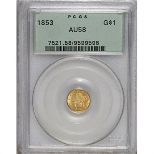 1853 G$1 AU58 PCGS. PCGS Population (967/2975). NG