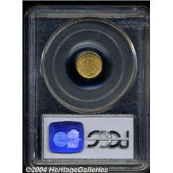 <B>1853<G$1> MS63 PCGS.</B></I> Sharply struck with a slightly muted green-gold appearance. A couple of marks are noted on the obverse field and device that limit the grade. <BR><BR><B>Important notice:</B> Heritage usually auctions material at the rate of 200-250 lots per hour. On some occasions eBay Live bid software or the Internet may not be able to keep up with the pace of the auction. We recommend placing a realistic absentee bid now as insurance to avoid disappointment. Occasionally the auctioneer may eliminate or reject an eBay Live bid, and the auctioneer may also reopen a lot after the close of the eBay live bidding (usually because we missed an audience bid), and may reject your bid even if it shows you as the winning bidder. By bidding via eBay Live, you agree that Heritage may award the lot to another bidder at its sole discretion under the circumstances described above or any other reasonable circumstances. Since eBay bids are not shown to us until we open the lot on the floor, we treat those bids just like floor bids. In most cases the floor responds before the eBay bid is presented to us, due to Internet lag time, so for consistency we have made it a policy that floor bids are always considered first over tie eBay live bids. Also please note that all Heritage lots purchased through eBay Live carry a 20% Buyer's Premium. Please make sure you read the Terms and Conditions before you bid.