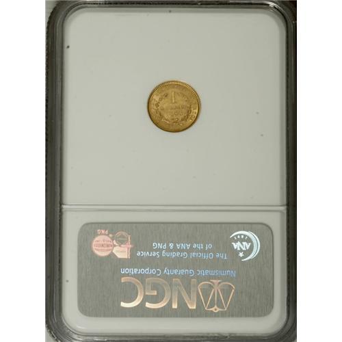1853 G$1 MS64 NGC. Choice and satiny, this butter-yell