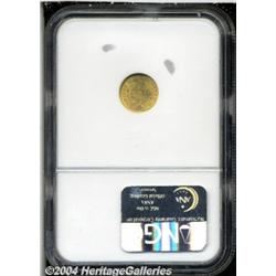 <table><tr><td><table><tr><td>1853 G$1 MS64 NGC. Uniform reddish patina envelopes the satiny surfaces. Well struck excepting the digits of the date, only a few pinpoint marks keep this diminutive gold coin from the Gem class. <BR><BR><B>Important notice:</B> Heritage usually auctions material at the rate of 200-250 lots per hour. On some occasions eBay Live bid software or the Internet may not be able to keep up with the pace of the auction. We recommend placing a realistic absentee bid now as insurance to avoid disappointment. Occasionally the auctioneer may eliminate or reject an eBay Live bid, and the auctioneer may also reopen a lot after the close of the eBay live bidding (usually because we missed an audience bid), and may reject your bid even if it shows you as the winning bidder. By bidding via eBay Live, you agree that Heritage may award the lot to another bidder at its sole discretion under the circumstances described above or any other reasonable circumstances. Since eBay bids are not shown to us until we open the lot on the floor, we treat those bids just like floor bids. In most cases the floor responds before the eBay bid is presented to us, due to Internet lag time, so for consistency we have made it a policy that floor bids are always considered first over tie eBay live bids. Also please note that all Heritage lots purchased through eBay Live carry a 20% Buyer's Premium. Please make sure you read the Terms and Conditions before you bid. <BR><BR><B>IMPORTANT ANNOUNCEMENT ABOUT RESERVES:</B> Heritage now divulges all reserves on its web site 7 days before every auction. If you want to know whether the reserve on this lot has been met, and if not, what the reserve amount is, please visit this lot page on the HeritageCoin.com web site, or email: bid@HeritageGalleries.com </span></font></td></tr></table></td></tr></table>
