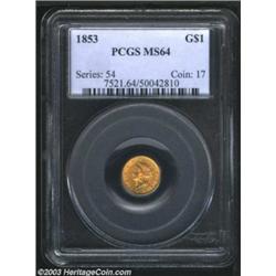<TABLE cellSpacing=0 cellPadding=0 width="100%" bgColor=#000000 border=0><TBODY><TR><TD width="100%"><TABLE cellSpacing=1 cellPadding=3 width="100%" border=0><TBODY><TR><TD width="100%" bgColor=#79735c><FONT face=arial color=#ffffff size=3><B>Description</B> </FONT></TD></TR><TR><TD width="100%" bgColor=#ffffff><FONT face=arial size=2><B>1853 G$1 MS64 PCGS.</B></I> Rich golden-brown luster bathes this original and attractive near-Gem. The strike is nearly unimprovable. Struck from lightly rotated dies. </FONT></TD></TR></TBODY></TABLE></TD></TR></TBODY></TABLE><BR><A name=PricesRealized></A><TABLE cellSpacing=0 cellPadding=0 width="100%" bgColor=#000000 border=0><TBODY><TR><TD width="100%"><TABLE cellSpacing=1 cellPadding=3 width="100%" border=0><TBODY><TR><TD width="100%" bgColor=#79735c><A name=PR><FONT face=arial color=#ffffff size=3><B>Previous Prices from Heritage Auctions</B> </FONT></A></TD></TR><TR><TD bgColor=#f6f6ed><TABLE cellSpacing=0 cellPadding=0 width="100%" border=1><TBODY><TR><TD align=middle width="33%"><B>Date</B></TD><TD align=middle width="33%"><B>Service</B></TD><TD align=middle width="33%"><B>Price</B></TD></TR><TR bgColor=whitesmoke><TD width="33%"><B>03/01/2003</B></TD><TD width="33%">NGC</TD><TD width="33%">$1,437.50</TD></TR><TR bgColor=whitesmoke><TD width="33%"><B>03/16/1996</B></TD><TD width="33%">NGC</TD><TD width="33%">$2,090.00</TD></TR><TR bgColor=whitesmoke><TD width="33%"><B>04/30/1993</B></TD><TD width="33%">NGC</TD><TD width="33%">$2,585.00</TD></TR><TR bgColor=whitesmoke><TD width="33%"><B>05/01/1990</B></TD><TD width="33%">NGC</TD><TD width="33%">$4,400.00</TD></TR><TR bgColor=whitesmoke><TD width="33%"><B>10/01/1990</B></TD><TD width="33%">NGC</TD><TD width="33%">$2,970.00</TD></TR><TR bgColor=whitesmoke><TD width="33%"><B>03/01/1998</B></TD><TD width="33%">PCGS</TD><TD width="33%">$1,980.00</TD></TR><TR bgColor=whitesmoke><TD width="33%"><B>10/02/2000</B></TD><TD width="33%">NGC</TD><TD width="33%">$1,035.00</TD></TR><TR bgColor=whitesmoke><TD width="33%"><B>02/01/2001</B></TD><TD width="33%">NGC</TD><TD width="33%">$1,437.00</TD></TR><TR bgColor=whitesmoke><TD width="33%"><B>01/12/2002</B></TD><TD width="33%">NGC</TD><TD width="33%">$1,035.00</TD></TR><TR bgColor=whitesmoke><TD width="33%"><B>02/03/1995</B></TD><TD width="33%">NGC</TD><TD width="33%">$2,860.00</TD></TR><TR bgColor=whitesmoke><TD width="33%"><B>11/23/2002</B></TD><TD width="33%">PCGS</TD><TD width="33%">$1,380.00</TD></TR><TR bgColor=whitesmoke><TD width="33%"><B>02/16/2000</B></TD><TD width="33%">PCGS</TD><TD width="33%">$1,208.00</TD></TR><TR bgColor=whitesmoke><TD width="33%"><B>11/15/2001</B></TD><TD width="33%">PCGS</TD><TD width="33%">$1,207.50</TD></TR><TR bgColor=whitesmoke><TD width="33%"><B>12/03/1993</B></TD><TD width="33%">PCGS</TD><TD width="33%">$2,090.00</TD></TR><TR bgColor=whitesmoke><TD width="33%"><B>01/10/1998</B></TD><TD width="33%">PCGS</TD><TD width="33%">$3,220.00</TD></TR><TR bgColor=whitesmoke><TD width="33%"><B>06/04/1995</B></TD><TD width="33%">PCGS</TD><TD width="33%">$2,750.00</TD></TR><TR bgColor=whitesmoke><TD width="33%"><B>12/03/1993</B></TD><TD width="33%">PCGS</TD><TD width="33%">$3,300.00</TD></TR><TR bgColor=whitesmoke><TD width="33%"><B>10/08/1994</B></TD><TD width="33%">PCGS</TD><TD width="33%">$5,280.00</TD></TR><TR bgColor=whitesmoke><TD width="33%"><B>10/06/2000</B></TD><TD width="33%">NGC</TD><TD width="33%">$805.00</TD></TR><TR bgColor=whitesmoke><TD width="33%"><B>09/01/1993</B></TD><TD width="33%">PCGS</TD><TD width="33%">$3,960.00</TD></TR><TR bgColor=whitesmoke><TD width="33%"><B>09/01/1999</B></TD><TD width="33%">PCGS</TD><TD width="33%">$1,553.00</TD></TR><TR bgColor=whitesmoke><TD width="33%"><B>05/31/2001</B></TD><TD width="33%">PCGS</TD><TD width="33%">$2,070.00</TD></TR><TR bgColor=whitesmoke><TD width="33%"><B>01/05/2001</B></TD><TD width="33%">PCGS</TD><TD width="33%">$862.50</TD></TR><TR bgColor=whitesmoke><TD width="33%"><B>02/12/2000</B></TD><TD width="33%">PCGS</TD><TD width="33%">$1,322.50</TD></TR><TR bgColor=whitesmoke><TD width="33%"><B>09/01/1994</B></TD><TD width="33%">NGC</TD><TD width="33%">$2,310.00</TD></TR><TR bgColor=whitesmoke><TD width="33%"><B>02/23/2001</B></TD><TD width="33%">NGC</TD><TD width="33%">$805.00</TD></TR><TR bgColor=whitesmoke><TD width="33%"><B>04/07/2001</B></TD><TD width="33%">NGC</TD><TD width="33%">$879.75</TD></TR><TR bgColor=whitesmoke><TD width="33%"><B>01/05/2001</B></TD><TD width="33%">NGC</TD><TD width="33%">$862.50</TD></TR><TR bgColor=whitesmoke><TD width="33%"><B>01/07/2000</B></TD><TD width="33%">NGC</TD><TD width="33%">$1,725.00</TD></TR></TBODY></TABLE></TD></TR><TR><TD bgColor=#ffffff><FONT face=arial size=1 ?>PLEASE NOTE: All prices realized reflect the final hammer price PLUS the buyer's premium in auctions that charge a buyer's premium. Each item has a notation at the top of the listing indicating whether that lot included a buyer's premium. Example: A item that sells with a final hammer price of $100 and a 20% buyer's premium will display with a price realized of $120. All information listed is intended to be as accurate as possible, but errors are possible. Please use this guide carefully and inform us of any inaccuracies. </FONT></TD></TR></TBODY></TABLE></TD></TR></TBODY></TABLE><BR><TABLE cellSpacing=0 cellPadding=0 width="100%" bgColor=#000000 border=0><TBODY><TR><TD width="100%"><TABLE cellSpacing=1 cellPadding=3 width="100%" border=0><TBODY><TR><TD width="100%" bgColor=#79735c colSpan=6><FONT face=arial color=#ffffff size=3><B>Price Guide*</B> </FONT></TD></TR><TR bgColor=#f6f6ed><TD align=middle><B>Grade</B> </TD><TD align=middle><B>Coin World<BR>(Trends)</B> </TD><TD align=middle><B>Numismedia<BR>Retail</B> </TD><TD align=middle><B>Numismedia<BR>Wholesale</B> </TD><TD align=middle><B>Coin<BR>Universe</B> </TD><TD align=middle><B>Heritage<BR>Value Index</B> </TD></TR><TR bgColor=#ffffff><TD align=middle>63</TD><TD align=right>$925.00</TD><TD align=right>---</TD>