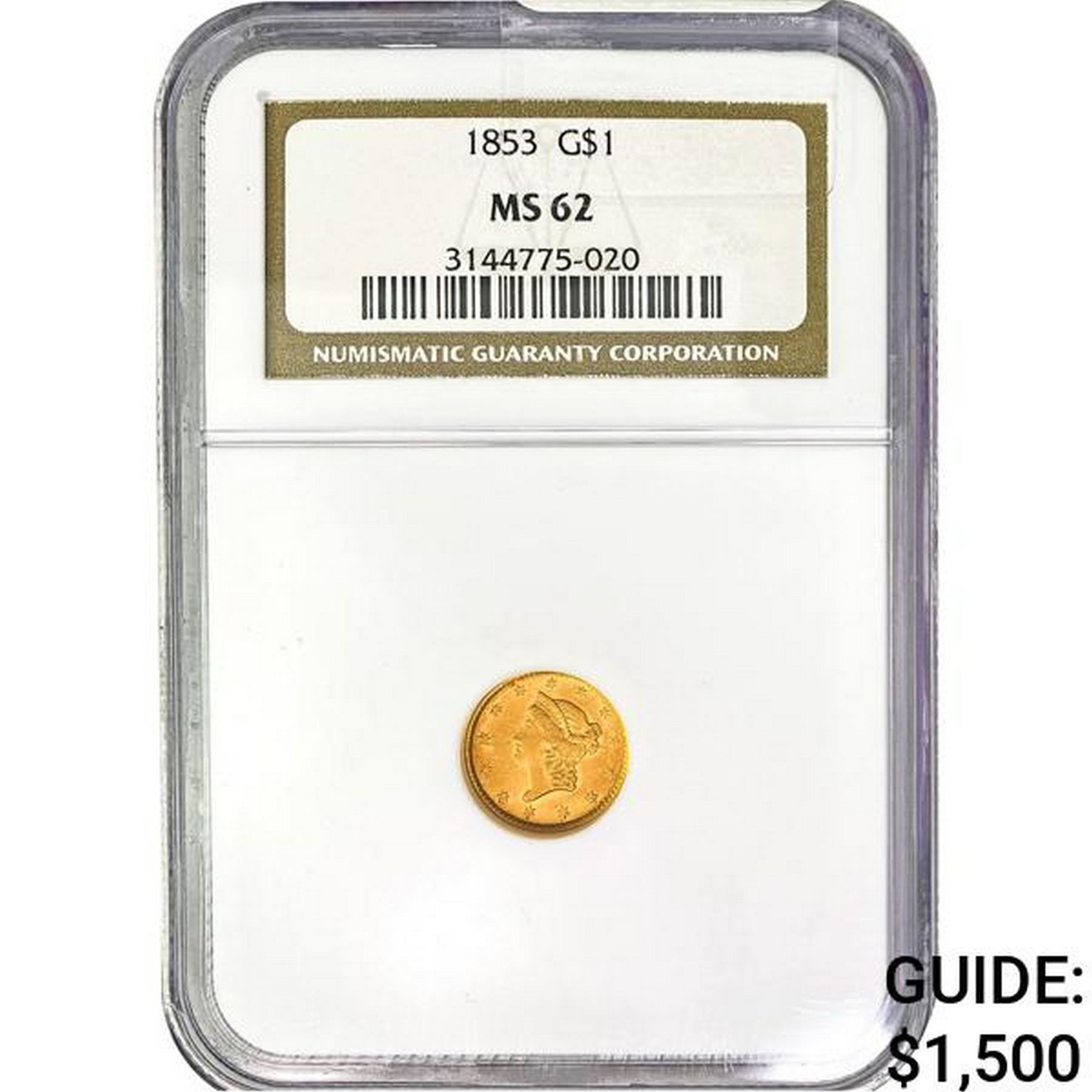 1853 G$1 NGC MS62