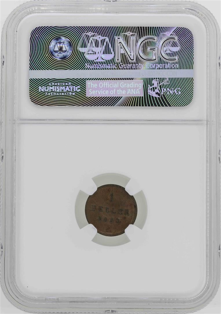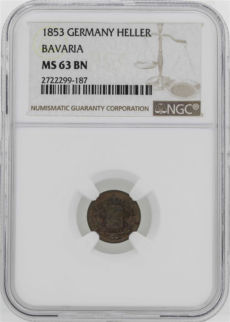 One 1853 Germany Bavaria Heller Coin NGC MS63BN. NGC Certified.