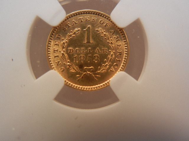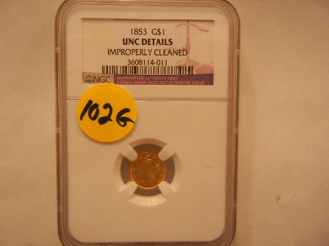 1853 Gold $1, UNC Details, Improperly Cleaned, Graded by NGC