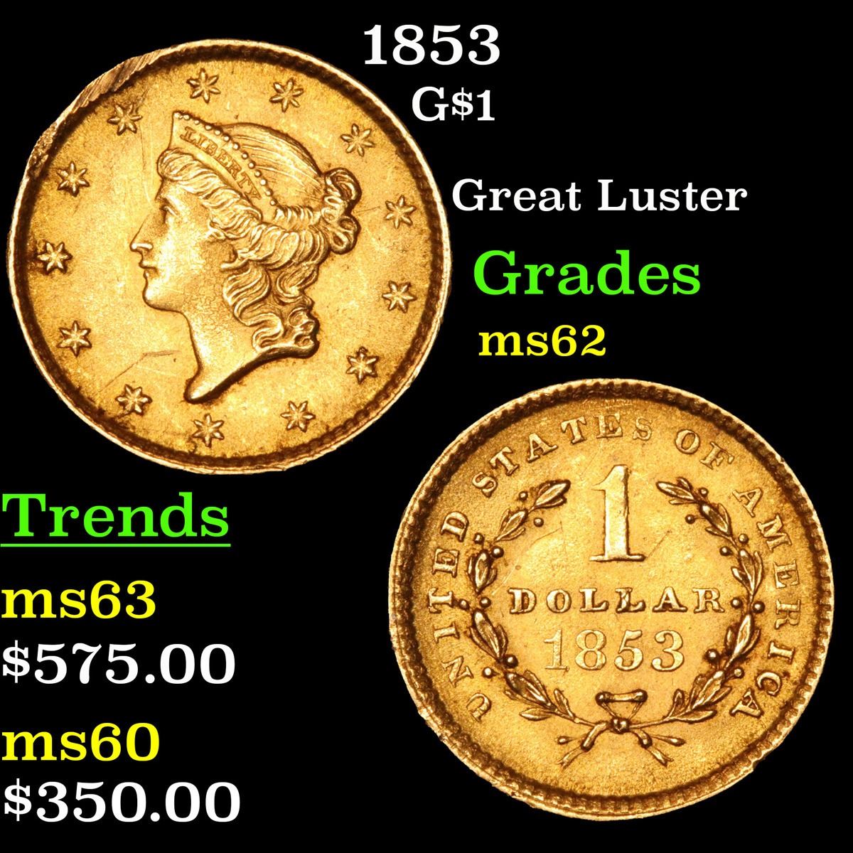 1853 Great Luster . Gold Dollar $1 Grades Select Unc.