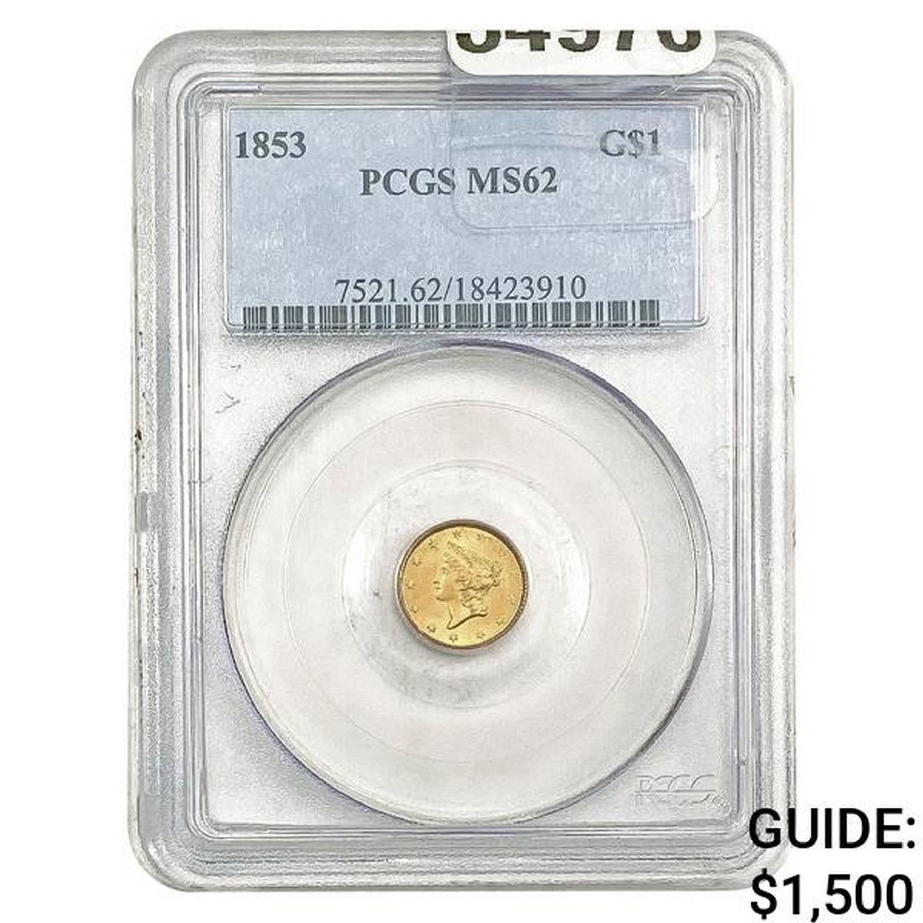 1853 Gold Dollar PCGS MS62