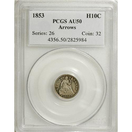 1853 H10C Arrows AU50 PCGS. PCGS Population (25/67