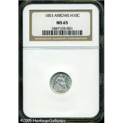 <B>1853 H10C Arrows MS65 NGC.</B></I> Frosty luster and white, virtually unmarked surfaces. Population: 72 in 65, 54 finer (1/05). Lot:6132