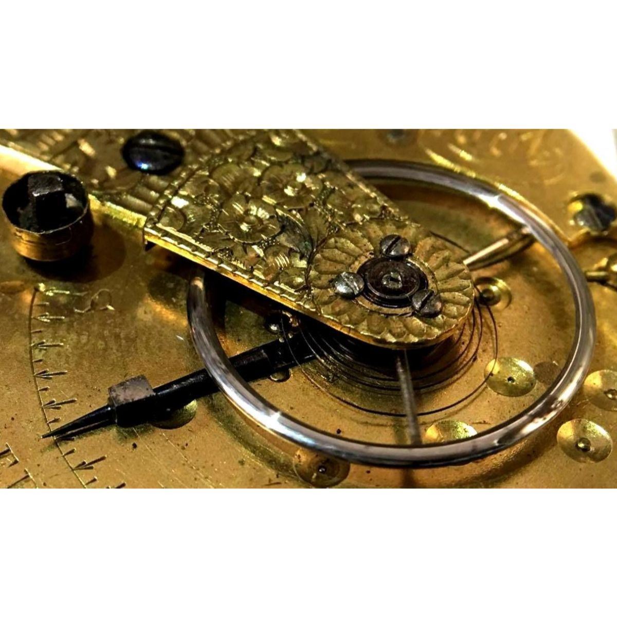 Serial #48159 Keywind Fusee Movement. Several service dates scratched into the inside of the watch case. 1853 mark from the City of Chester. Sterling Silver hallmark. Makers Mark is RS in an oval stamp indenture - the type entered by Reuben Squire with the London Assay Office. Jos. Pemberton would have been the retailer of the watch out of the Liverpool area. Hunter case with flip out movement. Case and movement serial number 48159. Retail origin: Liverpool. Richard Squire and his son Reuben were watchmakers near Devon. It was very common for the various components of a watch to be made by 40+ different people. It was unheard of for one maker to make an intricate watch from start to finish. Watch sold as is and needs servicing by an appropriate professional if it is to run. Â