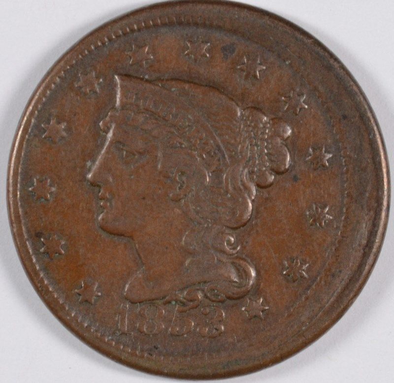 1853 LARGE CENT, RARE OFF-CENTER MINT ERROR. VF+ HARD TO FIND THIS TYPE ERROR