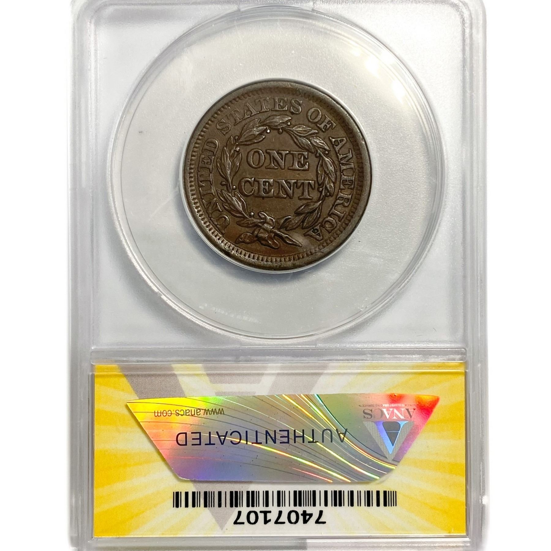 1853 Large Cent ANACS AU53