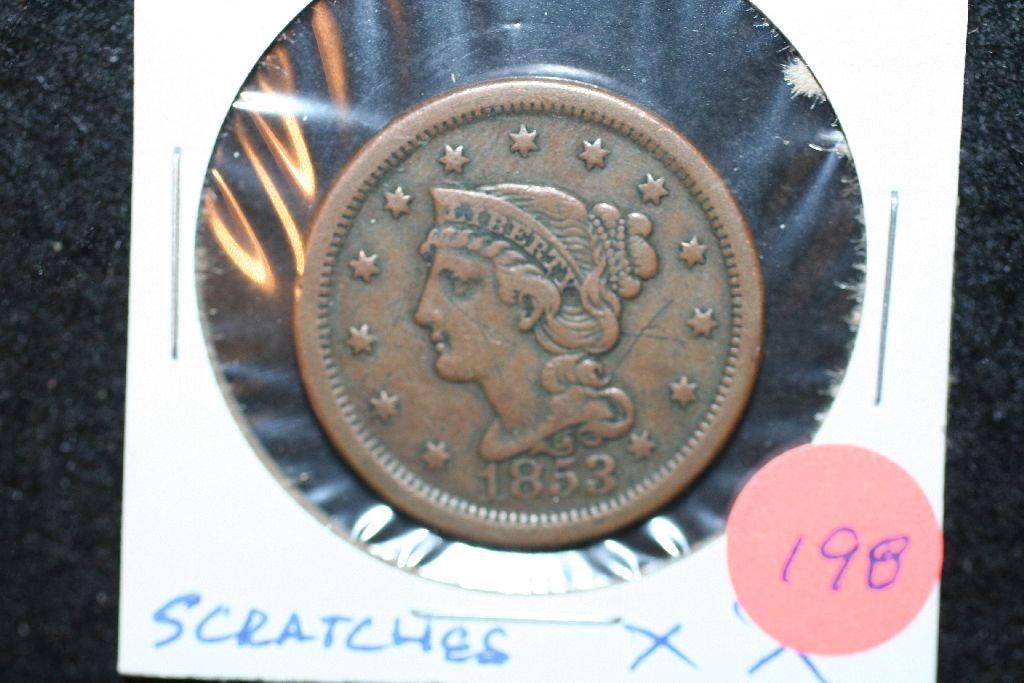 1853 Large One Cent; Scratches "XX"