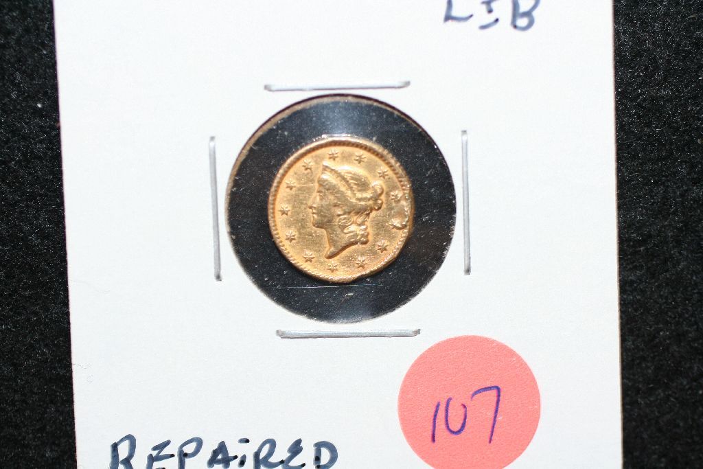 1853 Liberty $1 Gold Coin, Repaired