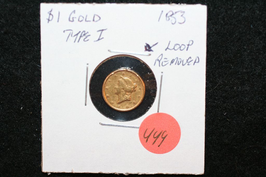1853 Liberty $1 Gold Coin, Type I, Loop Removed