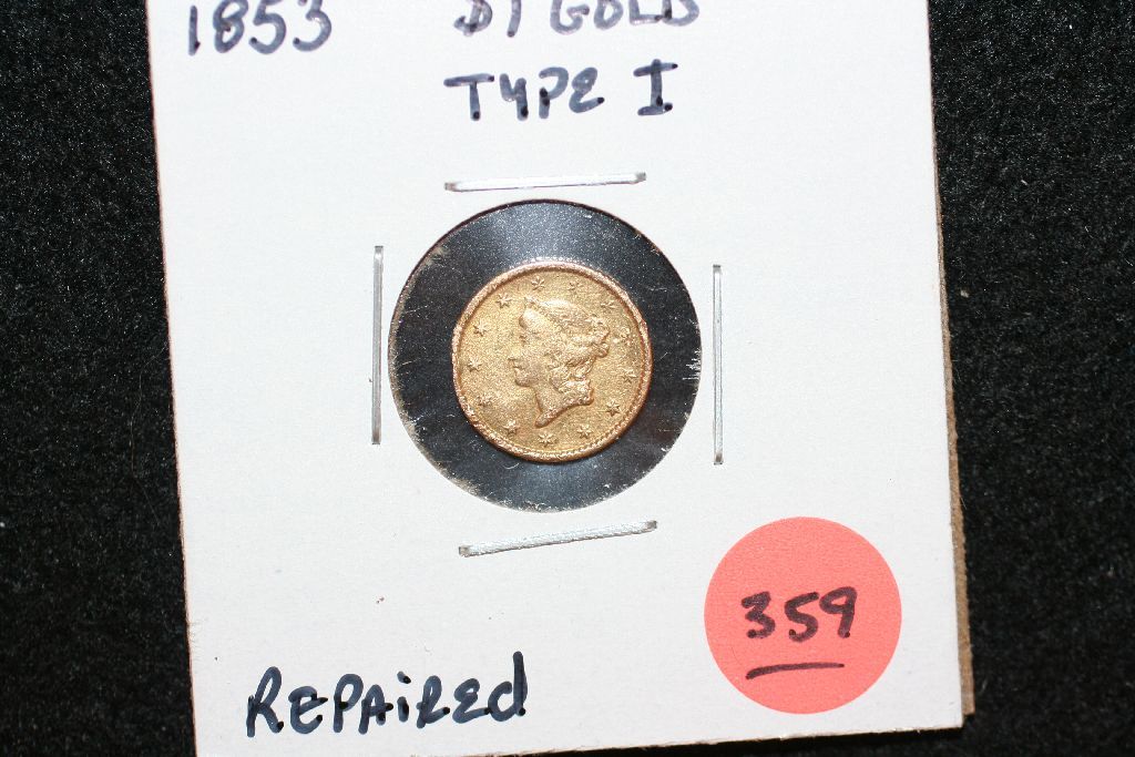 1853 Liberty $1 Gold Coin, Type I, Repaired