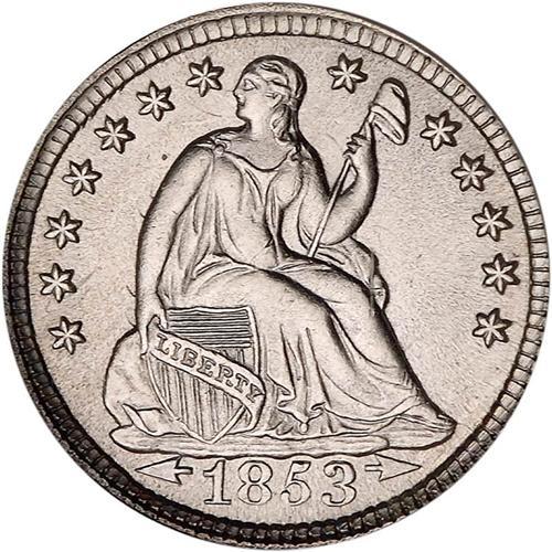 Arrow at Date, just a three year type. A fully struck, completely white coin, on an ever so slightly grainy planchet with just a trace of clash marks and a light die crack that runs across STATES OF. Rare in this condition.