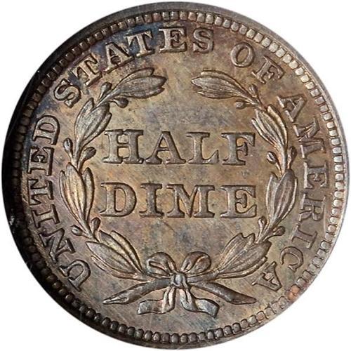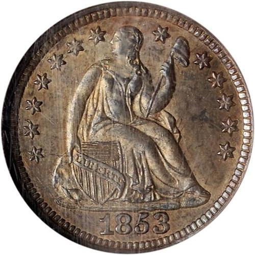 <b>1853 Liberty Seated Half Dime. No arrows. NGC graded MS66.</b> Lustrous and almost devoid of any color other than natural light milky silver-gray consistent with "old silver" quality of preservation. A refreshingly original Gem. And a very pleasing example of this rare No Arrows Type. So ends the discussion of the luster. Now on to the detail. This piece is not just close to, but completely and sharply struck, with terrific detail at the head of Liberty, her gown folds and the lines in the shield, etc. Many No Arrows coins were rounded up by the Treasury department and melted with the introduction of the With Arrows coins in 1853. Only 135,000 of these 1853 No Arrows half dimes were made (Compare to the enormous figure of 13,210,020 pieces struck of the With Arrows Type!) <b>(PCGS # 4351)</b>