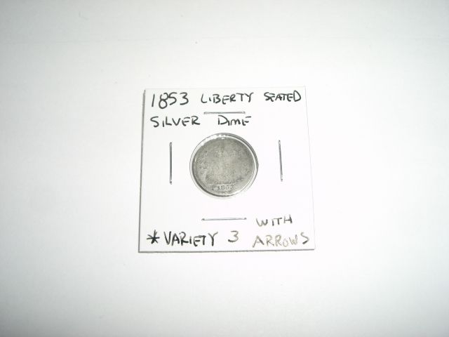 1853 Liberty Seated SILVER Dime *RARE VARIETY 3 WITH ARROWS - PLEASE LOOK AT PICTURE TO DETERMINE GRADE - NICE COIN*!! ***Coin, Currency & All Items Listed in this auction - Grades, Conditions and Values are not Safe Deposit Coins LLC Responsibilty. Grades, Condition and Values are determined by Consigner(s) & Buyers ONLY***