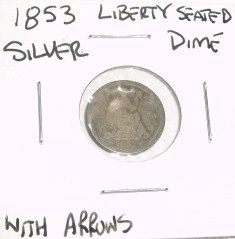 1853 Liberty Seated SILVER Dime With Arrows *PLEASE LOOK AT PICTURE TO DETERMINE GRADE*!! ***Coin & Currency Grades, Conditions and Values are not Northern Colorado Estate Liquidators Responsibilty. Grades, Condition and Values are determined by Consigner(s) & Buyers ONLY*