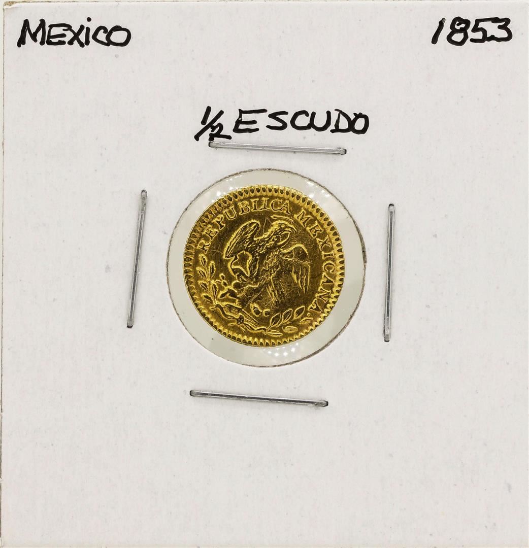 One 1853 Mexico 1/2 Escudo Gold Coin.