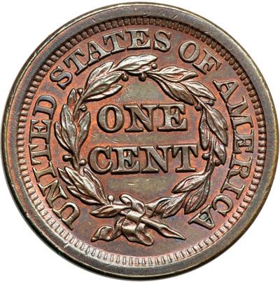 1853 N-22 R2. MS-60. Repunched 18. Lustrous light olive and chocolate with slightly faded red covering the protected areas on both sides. Possibly lightly dipped long ago, but the toning is very attractive and this cent offers excellent eye appeal. The only marks are a speck of carbon in the middle of the bust and a tiny tick on the rim left of the end of the wreath ribbon. Rare very early die state (VEDS), die state a early. The repunching on the 18 is sharp and the fine die lines are crisp. Not in the overall condition census for the variety but CC#2 of the earliest die state.