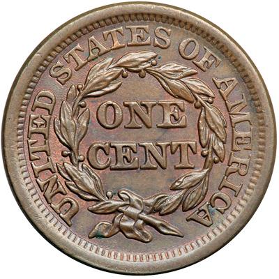 1853 N-24 R2. AU-55. Lustrous light chocolate brown with faded mint red showing in protected areas on the reverse. Outstanding eye appeal for the grade, just a touch of rub on the highest points from mint state. A tiny scratch under the T in UNITED is the only notable mark. LDS, die state b.