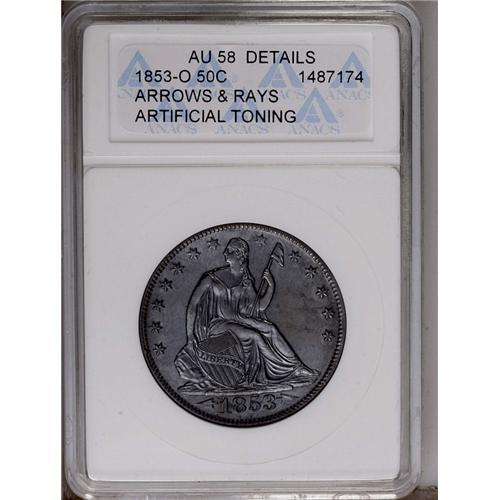1853-O 50C Arrows and Rays--Artificial Toning--ANACS. 1853-O[50C] Arrows and Rays--Artificial Toning