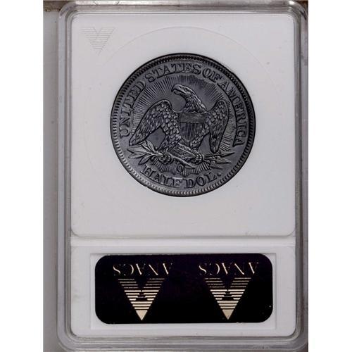 <B>1853-O<50C> Arrows and Rays--Artificial Toning--ANACS. AU58 Details.</B></I> A hairlined piece with a few light pinscratches on the right side stars and the L in DOL. Darkly toned, but the strike is sharp aside from the upper reverse, and little wear is detected.