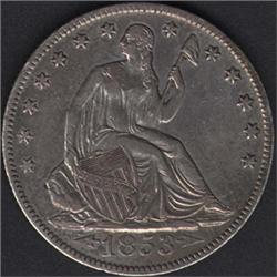 Half Dollars 1853-o Arrows and Rays. Extremely Fine 40. <b>Toned in pleasing shade of pale gold, accented with multicolored sprinkles.</b> <p align="center">Superior Galleries was founded in 1929 and has been a leader in