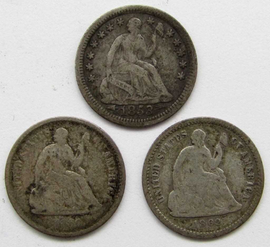 1853-O ARROWS, 1860-O, 1862 SEATED HALF