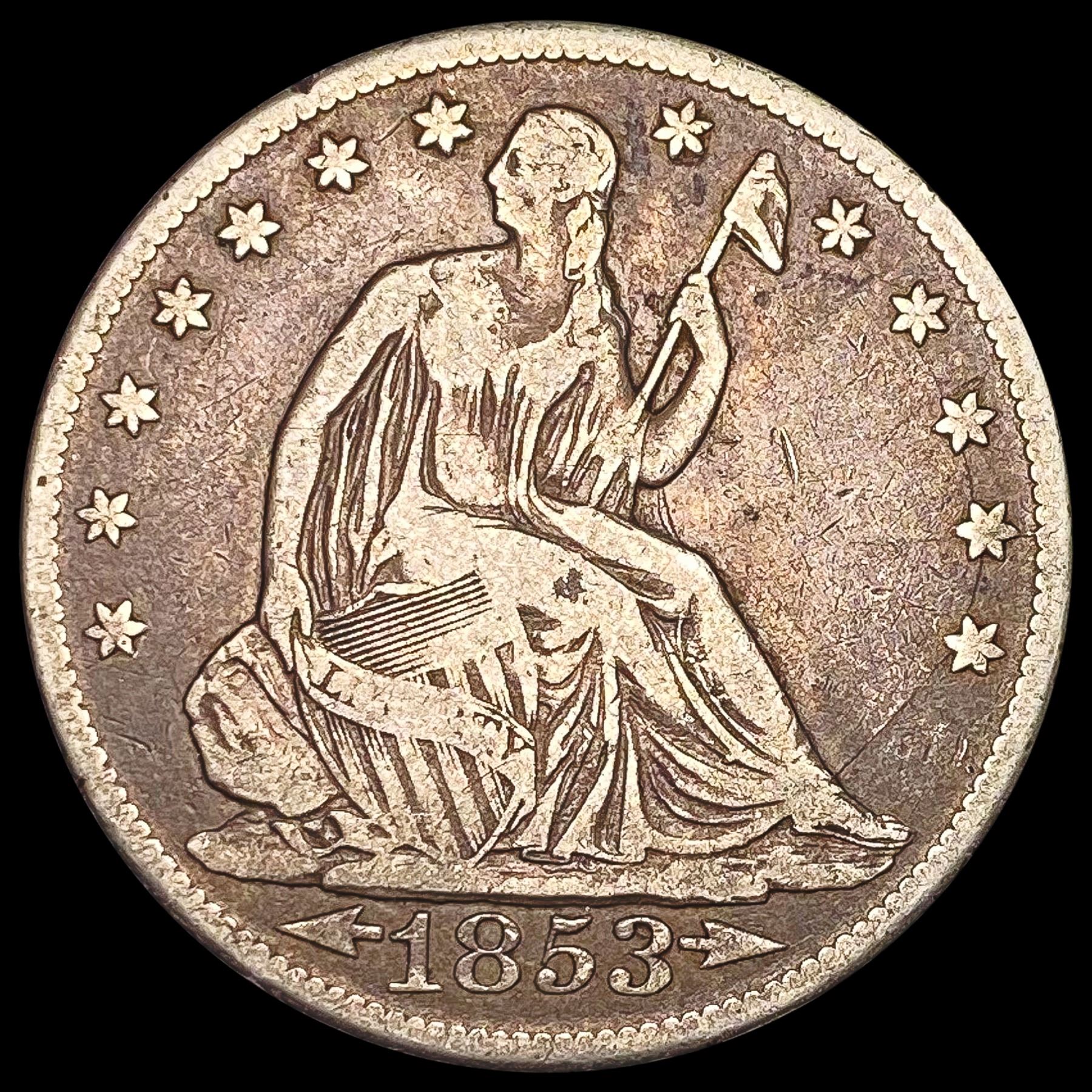1853-O Arrows Rays Seated Liberty Half Dollar LIGHTLY CIRCULATED
