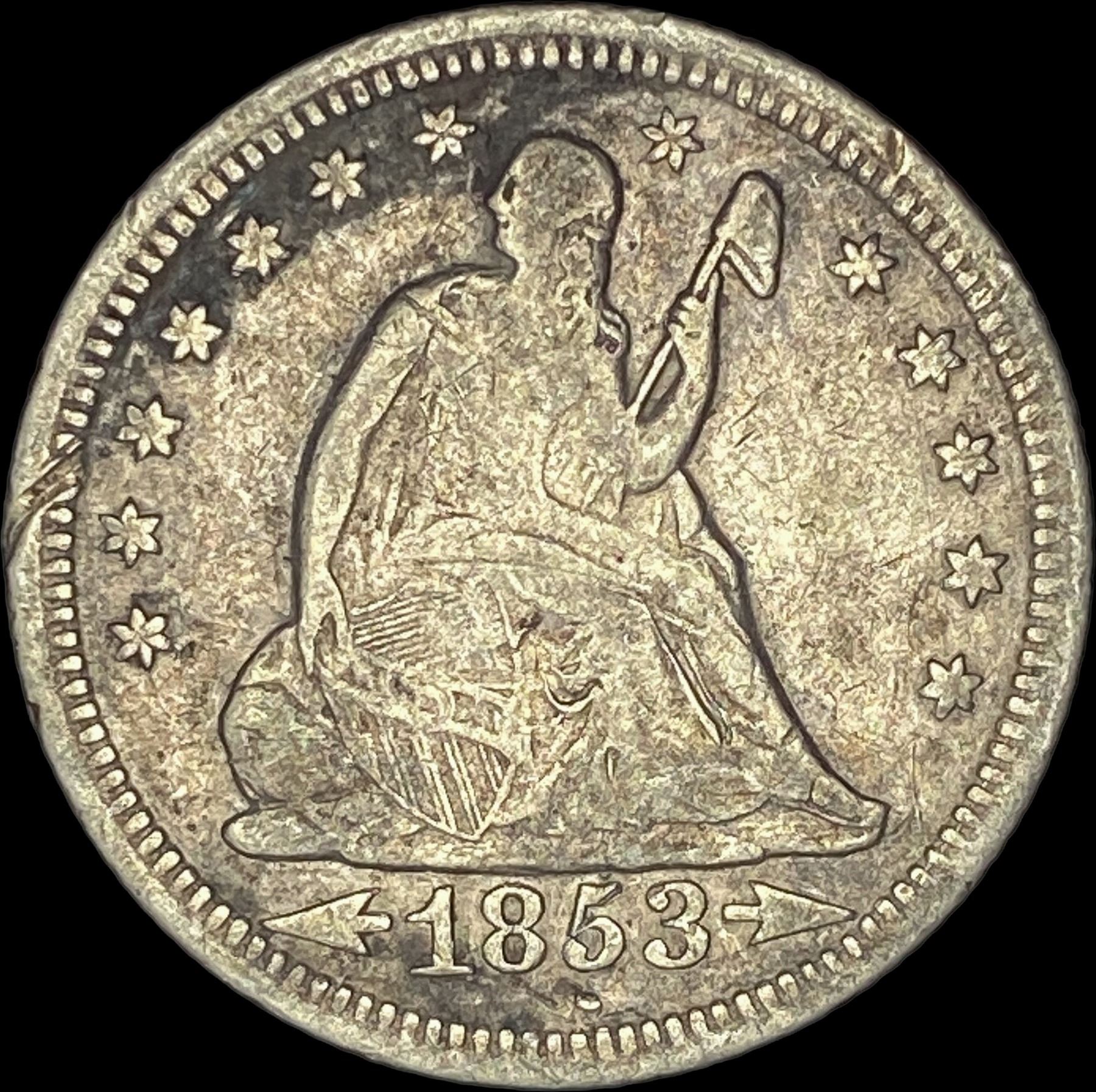 1853-O Arrows/Rays Seated Liberty Quarter LIGHTLY CIRCULATED