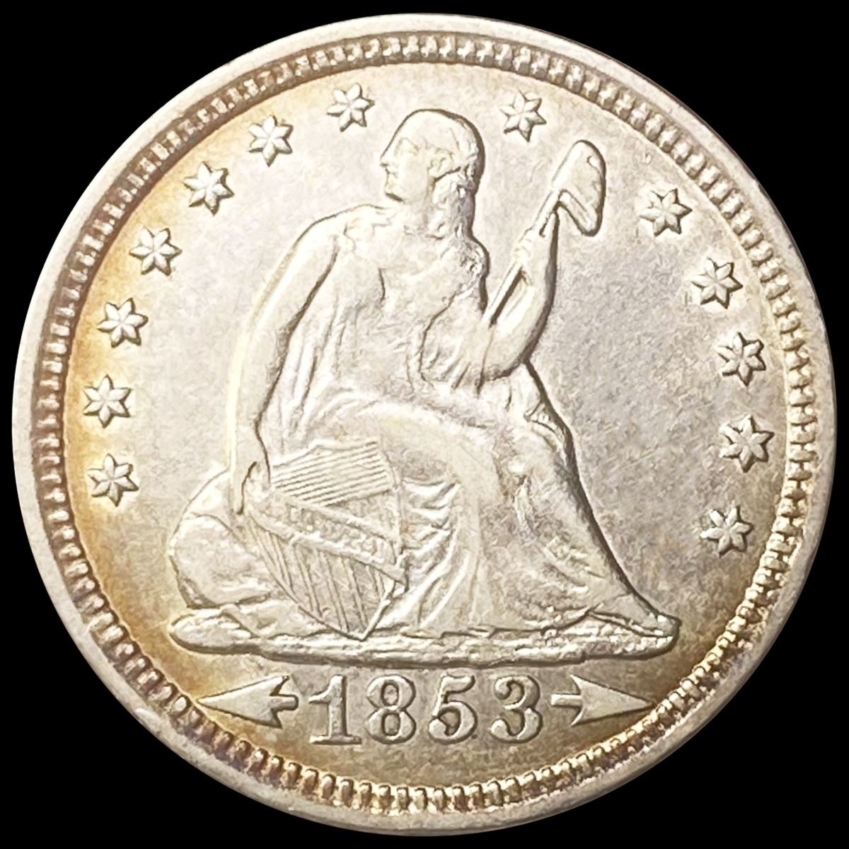 1853-O Arrws & Rays Seated Liberty Quarter UNC
