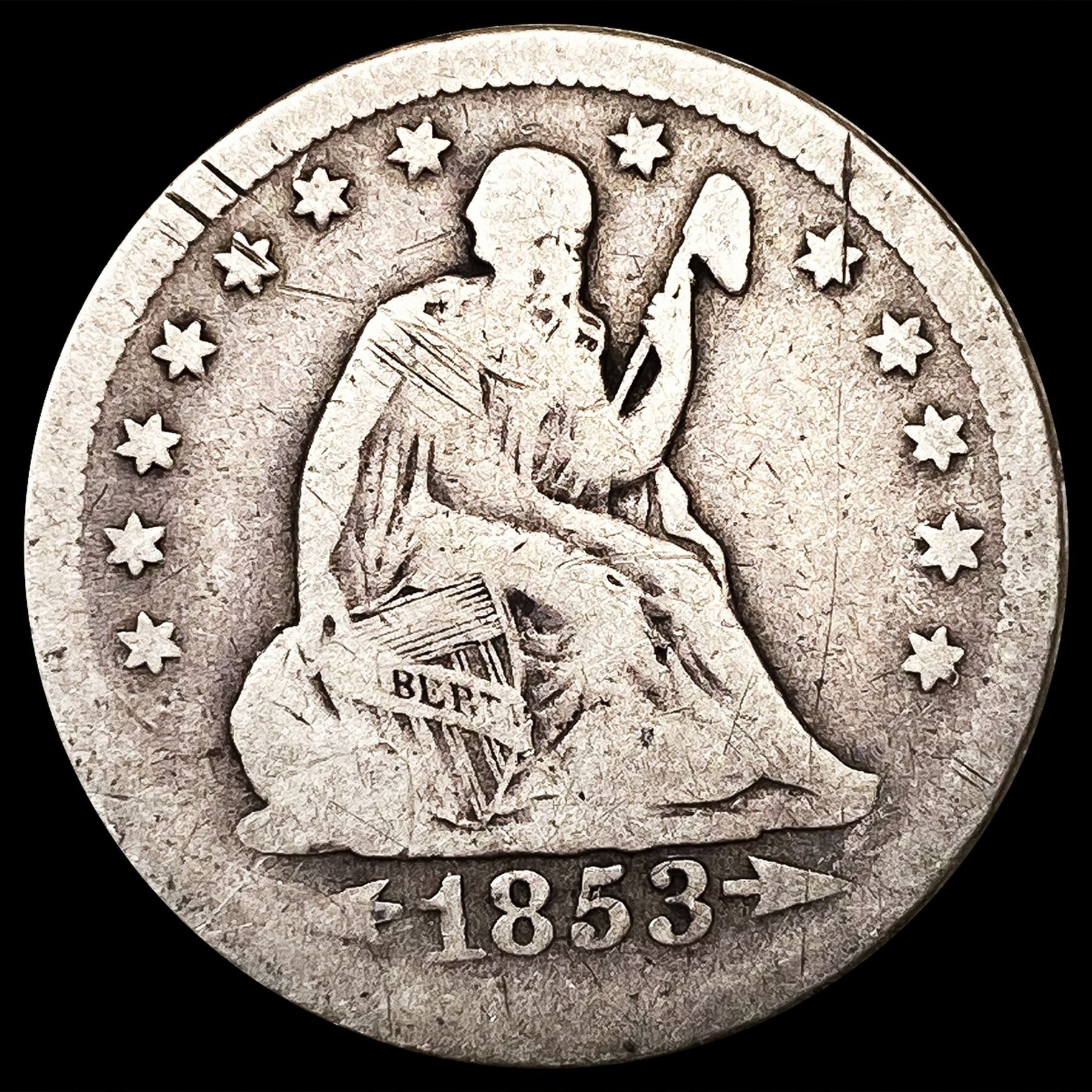 1853-O Arws & Rays Seated Liberty Quarter NICELY C