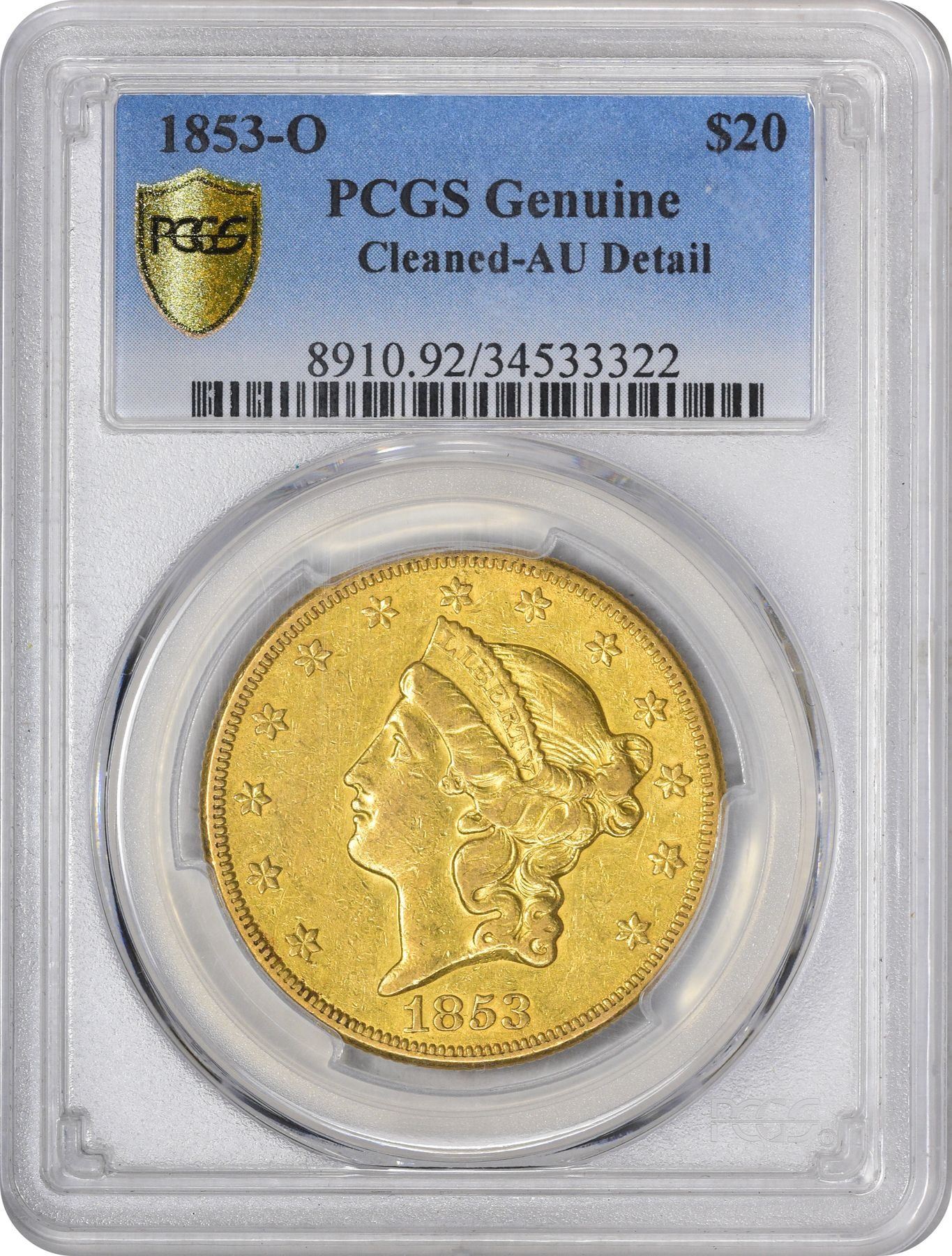 Title: 1853-O Gold $20. PCGS AU Details -- Genuine – Cleaned