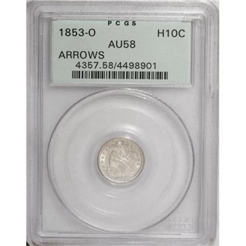 <B>1853-O H10C 3/1 Arrows AU58 PCGS.</B></I> PCGS Population (11/46). NGC Census: (15/42). Mintage: 2,200,000. (#4357)<BR><BR><B>Coin Engraver:</B> Christian Gobrecht<BR><BR><b>Shipping:</b> Coins & Currency (<a target="_blank" href="http://www.heritageauctions.com/common/shipping.php">view shipping information</a>)
