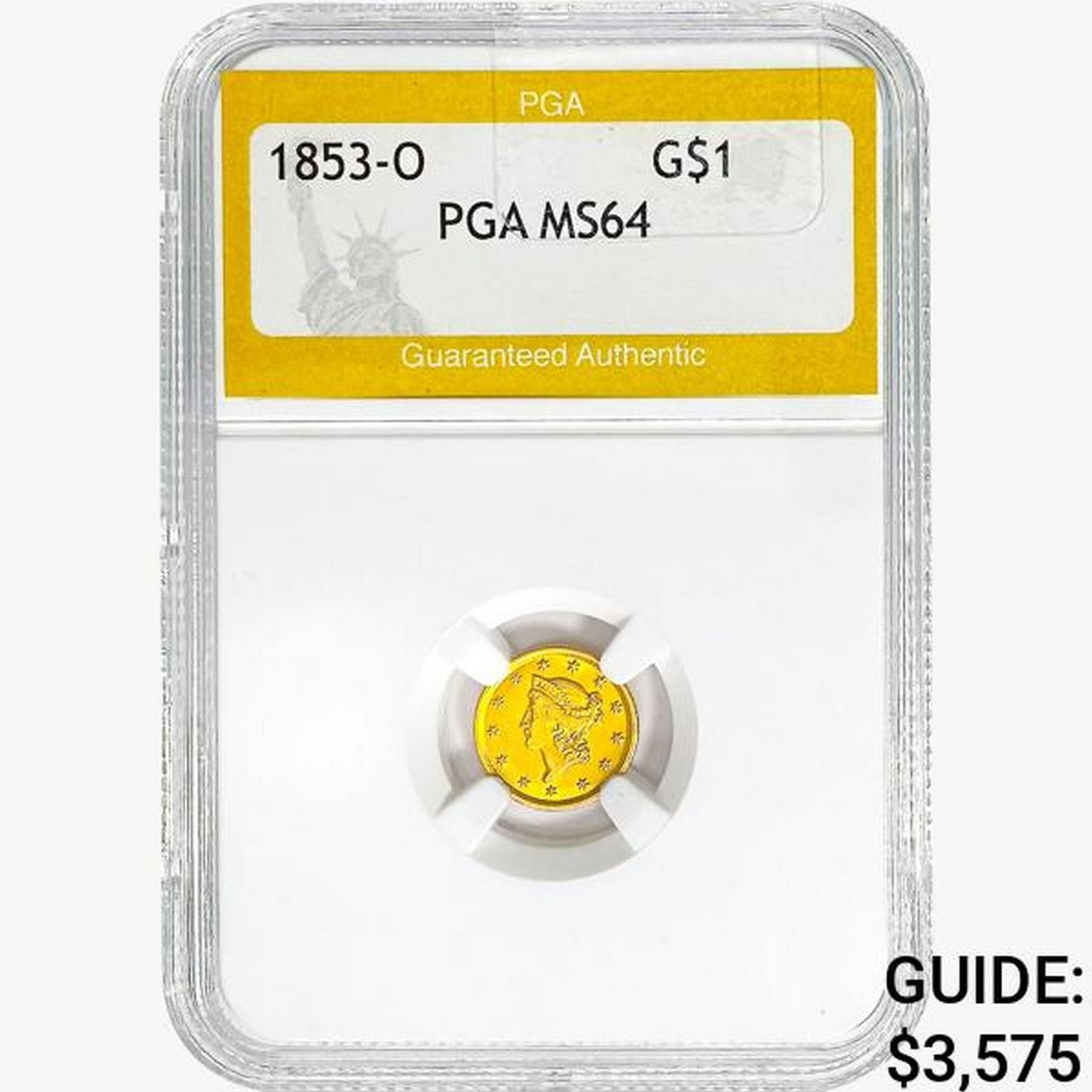 1853-O Rare Gold Dollar PGA MS64