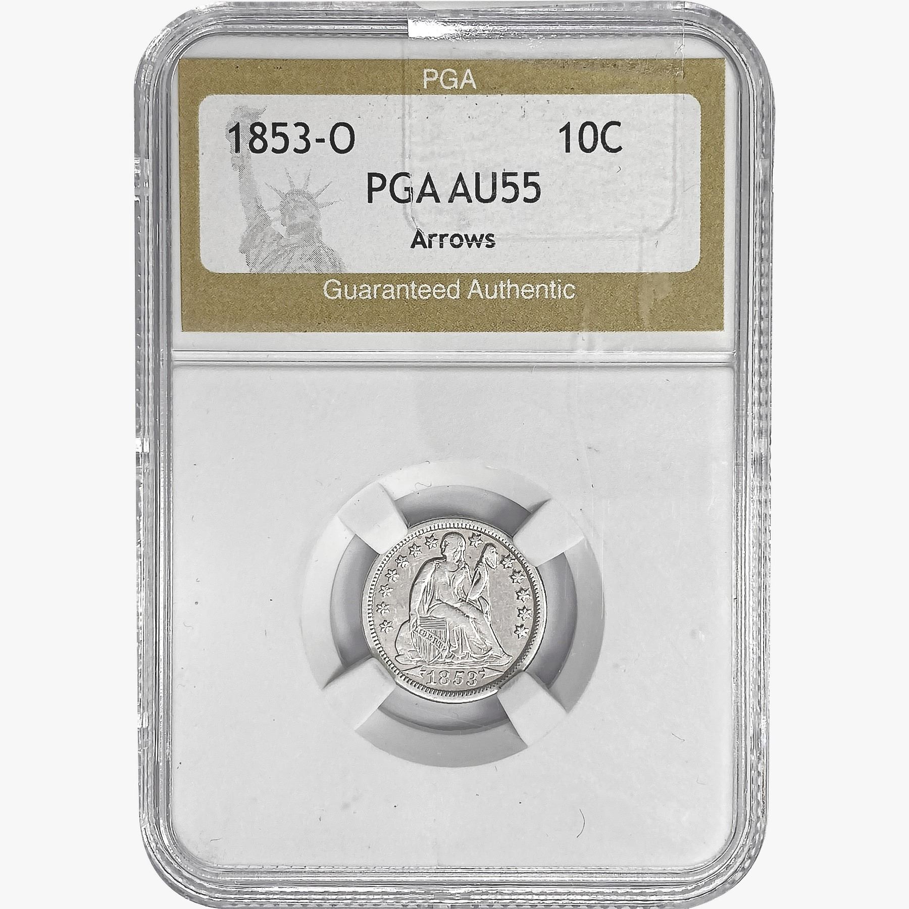 1853-O Seated Liberty Dime PGA AU55 Arrows