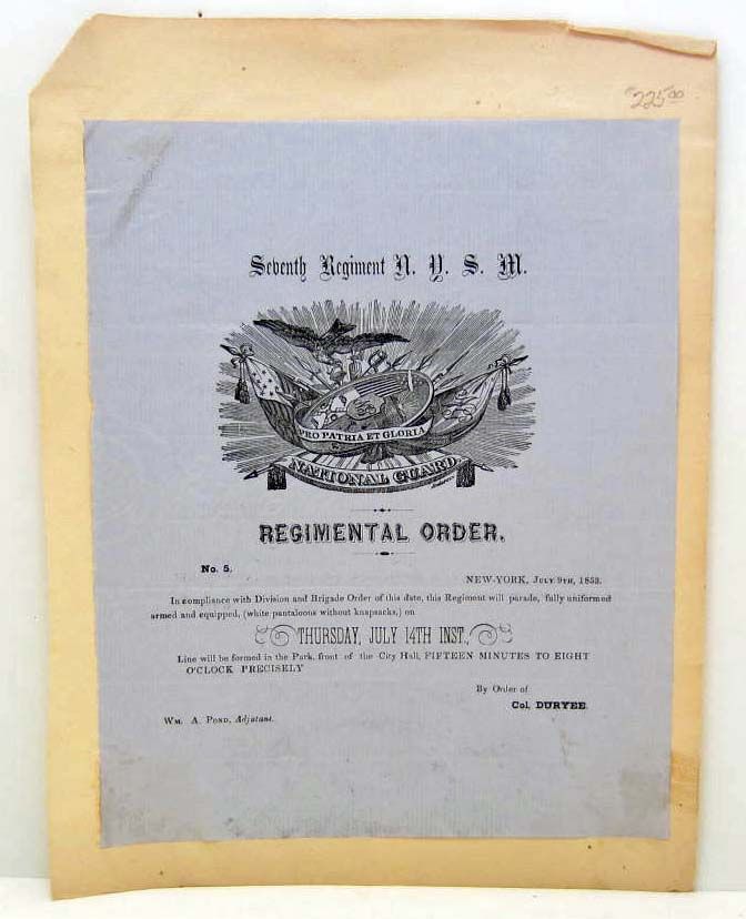 1853 PRE CIVIL WAR REGIMENTAL ORDER REGARDING PARADE