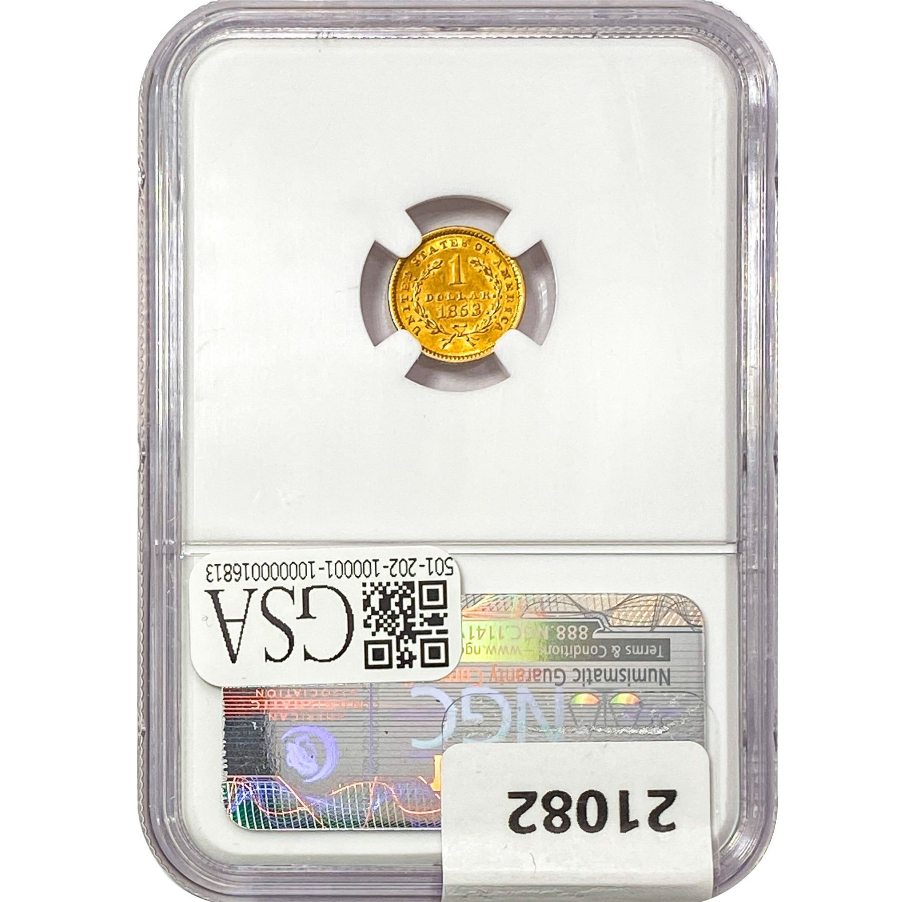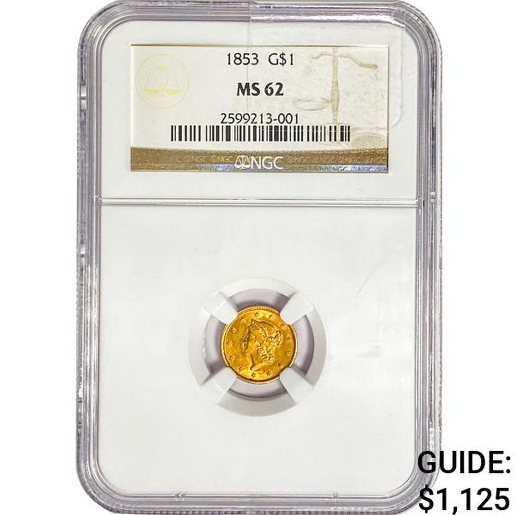 1853 Rare Gold Dollar NGC MS62