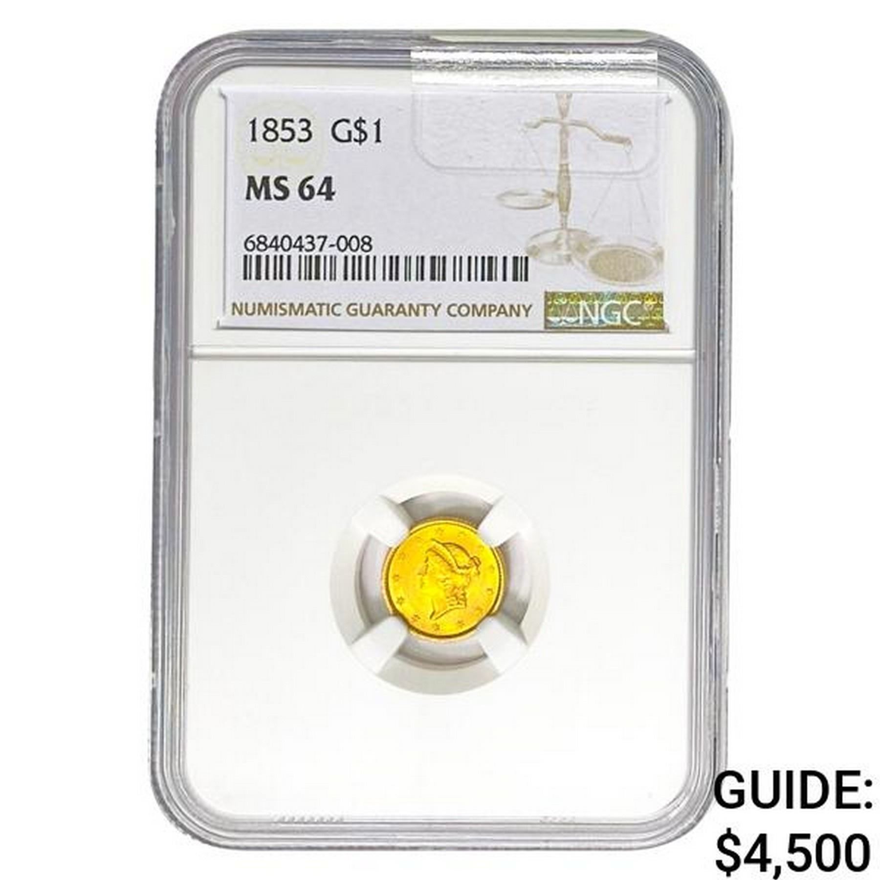 1853 Rare Gold Dollar NGC MS64