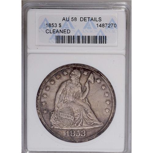 1853 S$1 --Cleaned--ANACS. AU58 Details. Although light 1853[img border='0' src='http://www.heritage