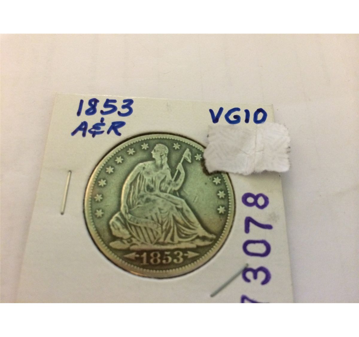 1853 SEATED LIBERTY HALF DOLLAR VG-10