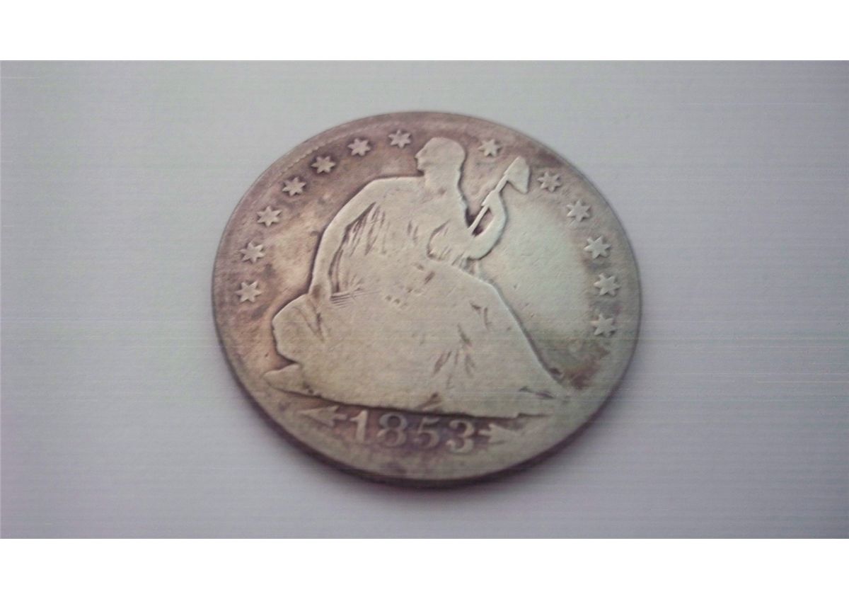 1853 SEATED LIBERTY SILVER HALF DOLLAR, ARROWS+RAYS