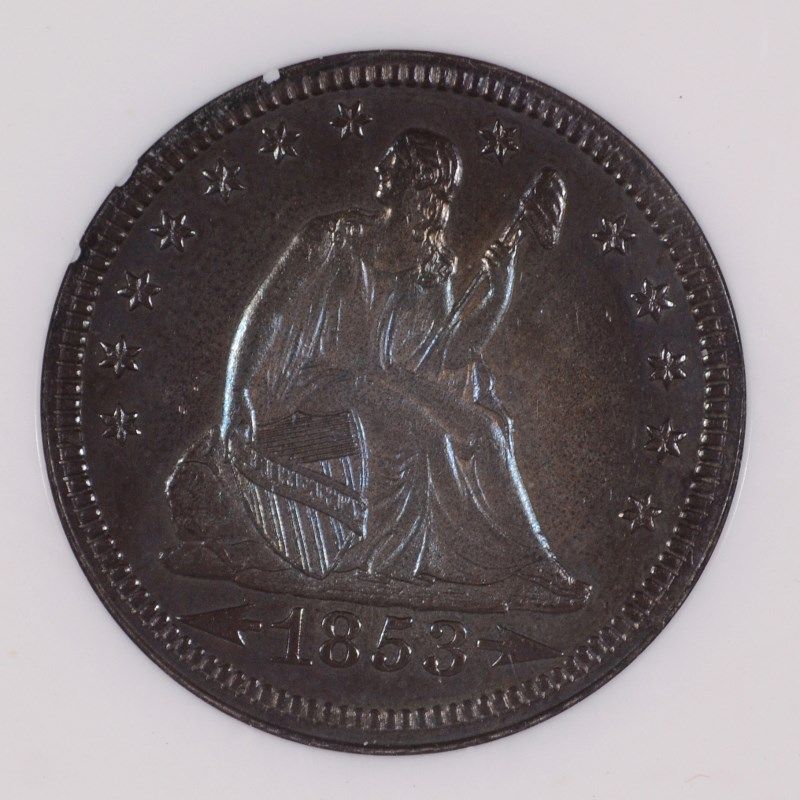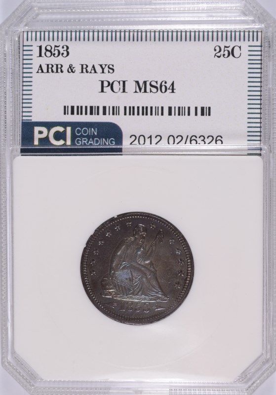 1853 SEATED QUARTER, ARROWS AND RAYS, PCI MS-64